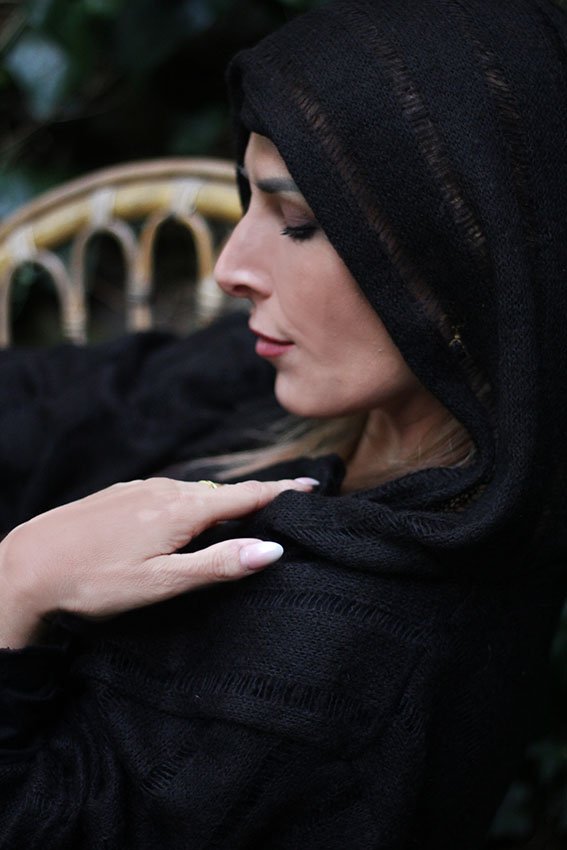 hecho de lana mezclada mohair con sutiles lineas de transparencias